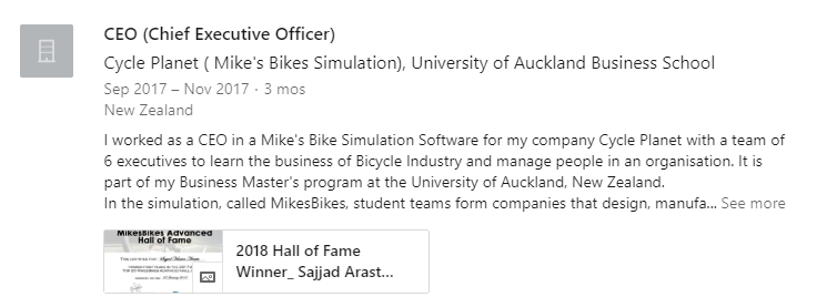 Using my MikesBikes Experience in LinkedIn