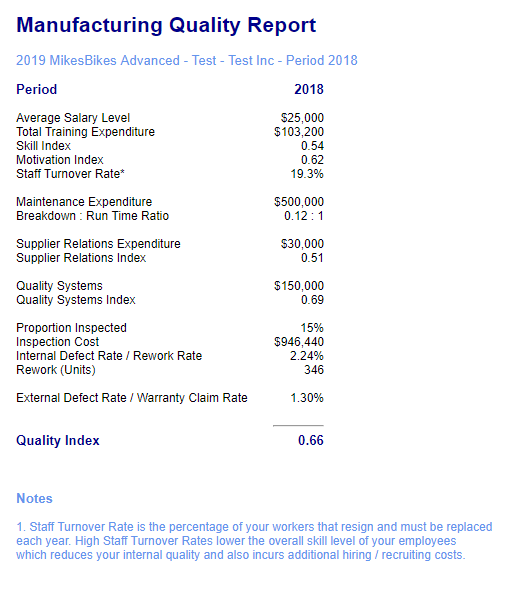 Planning is necessary, but some would say that 10% of the effort is in the planning and 90% is in the implementation. In MikesBikes-Advanced, it is assumed that the outcome of your firm’s decisions depends on the amount of money you commit and on the decisions of the competitor. In reality many more things come into play, such as the quality of the feedback and control systems, the nature of leadership, and the motivation of the people in the organization.