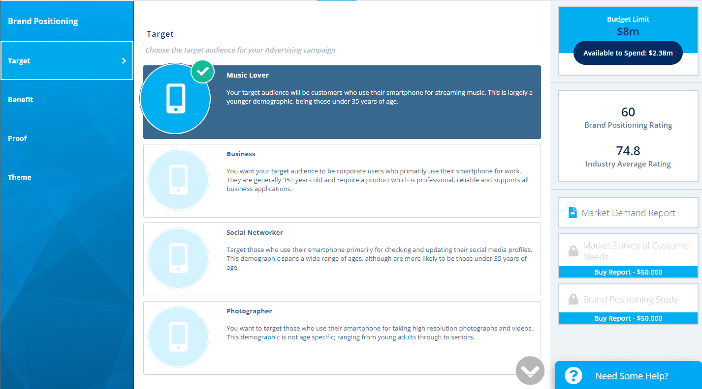 Getting your Brand Positioning strategy right is vital. Brand position ensures that you are effectively targeting your customers through media advertising with a message that they will respond to. You should purchase the Market Survey of Customer Needs and Brand Positioning Strategy reports.