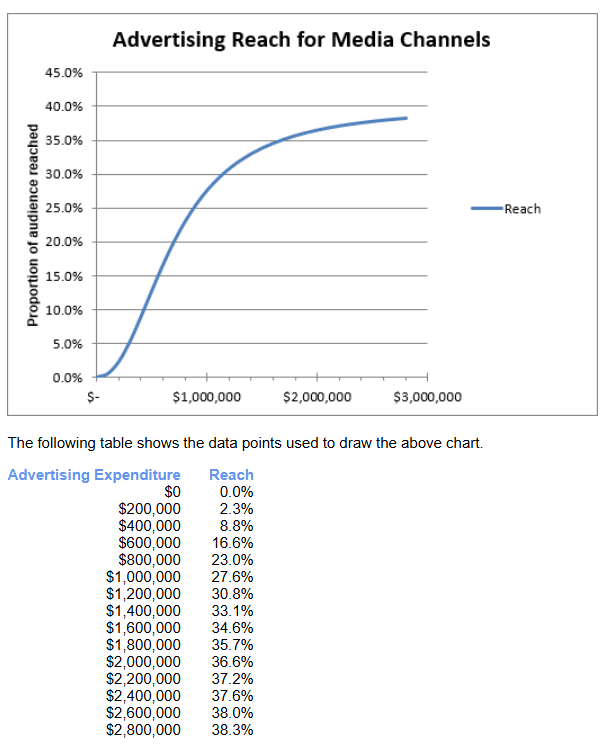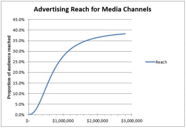 Each media type can reach a given proportion of its audience for a given investment. This is shown within the Advertising for Media Channels graph.